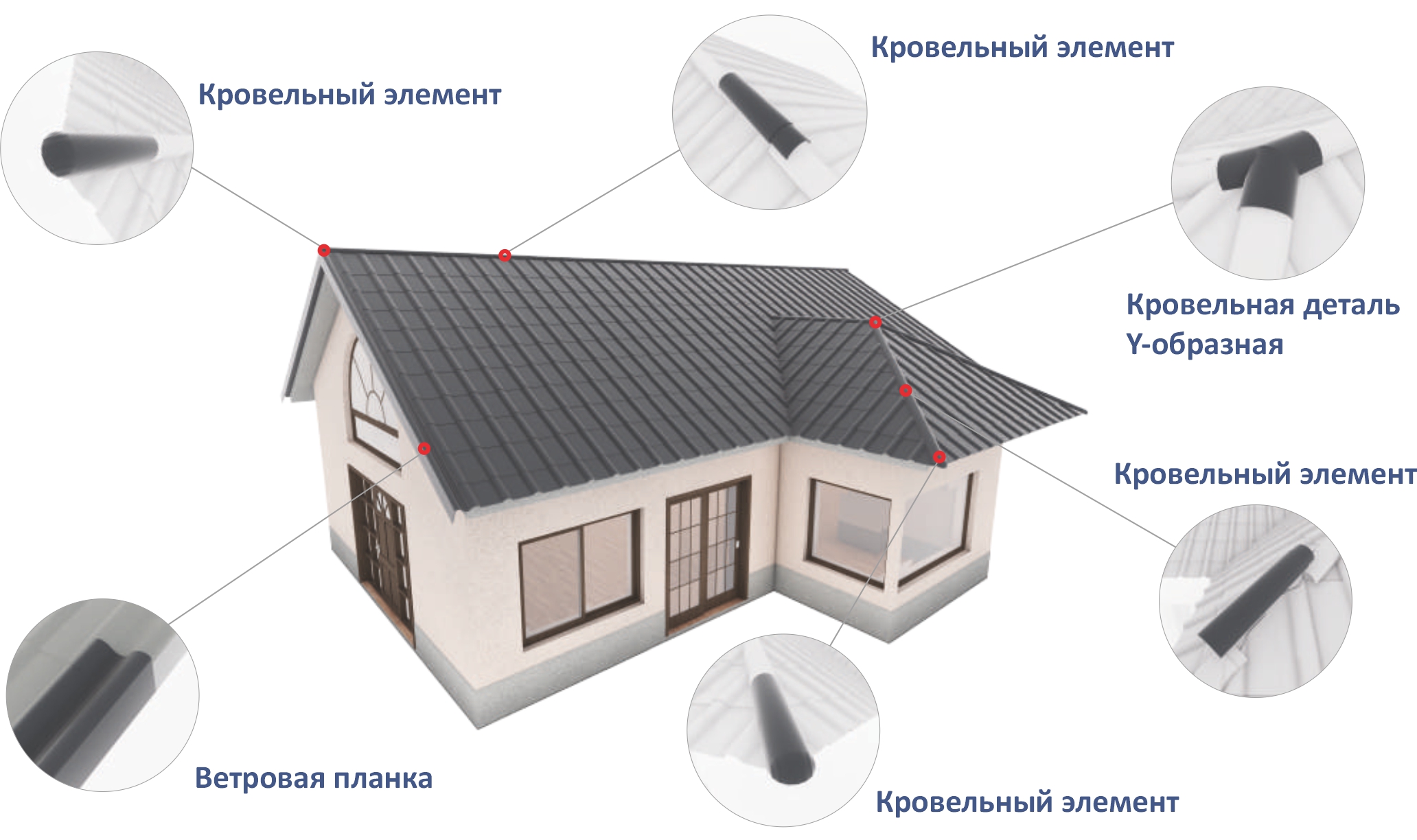 Кровельный элементОбеспечивает эстетическую отделку крыши, обеспечивает гидроизоляцию, защищает от ветра и воды. |